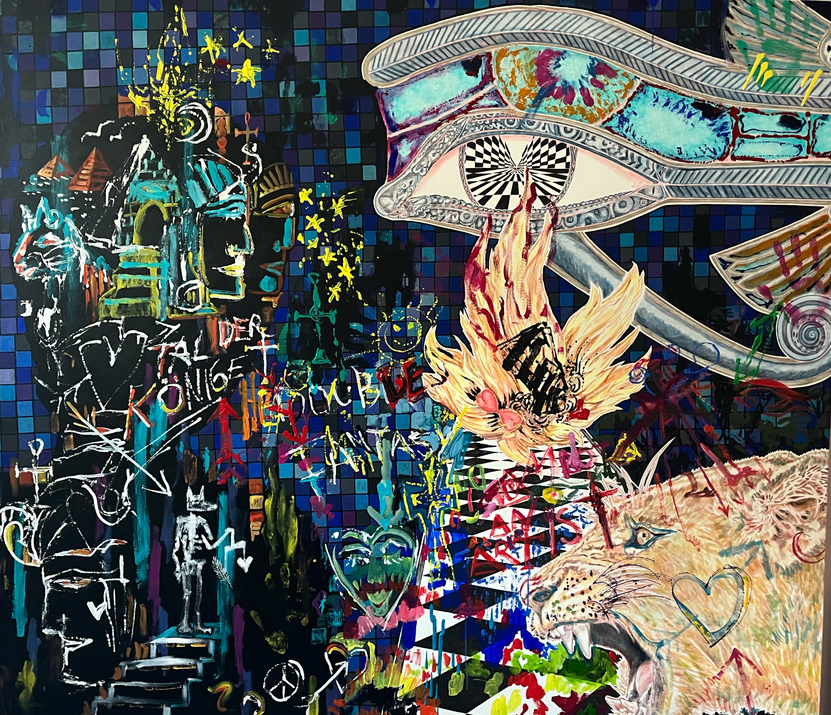 With her preferred media – acrylic on canvas – she creates unique, spacy, pop-art inspired artworks, with a hint of mythology and much symbolism.